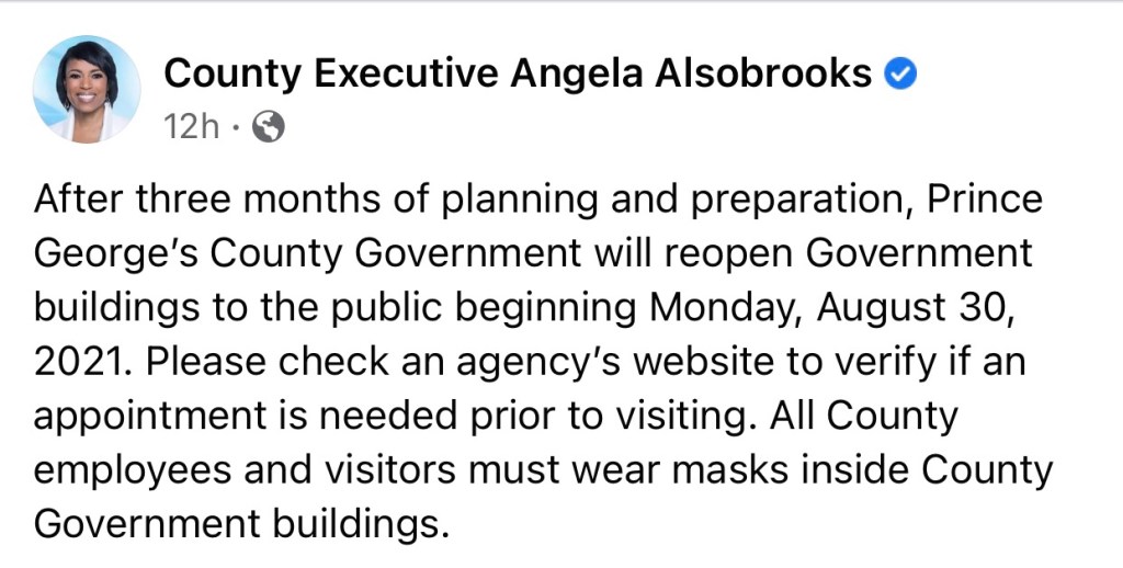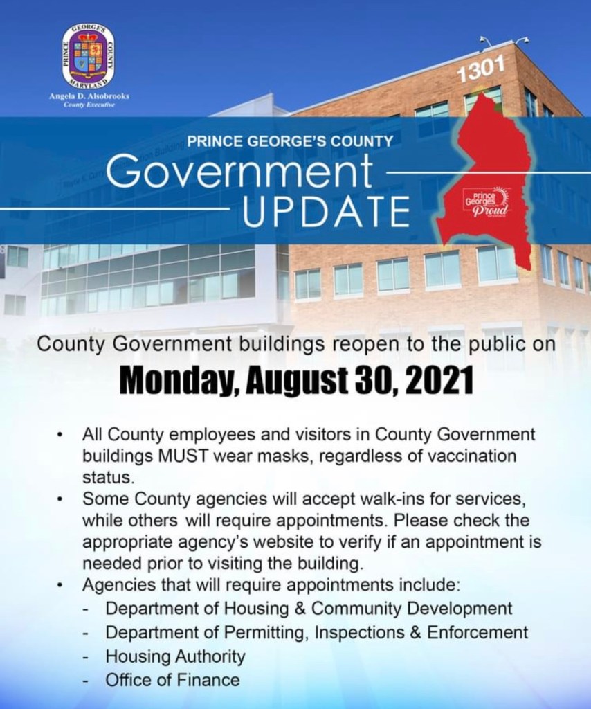 Prince George’s Co. government buildings reopen to public Aug. 30