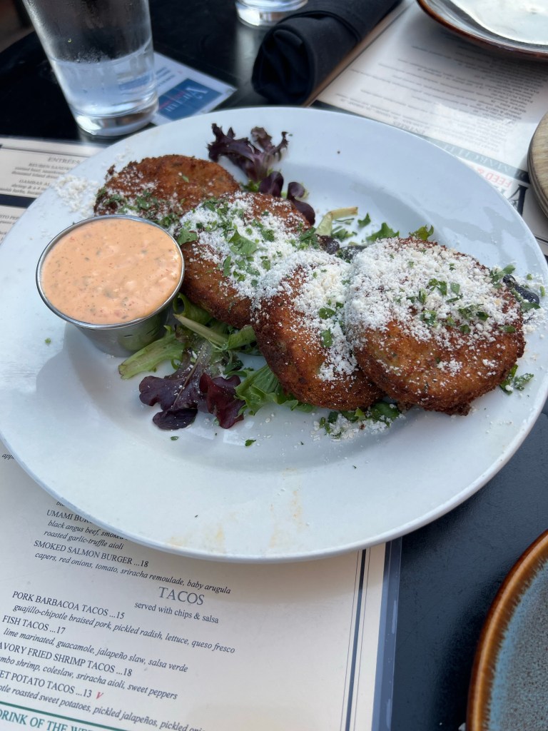 On a Saturday night, this restaurant was busy- with lots of folks dining inside of the restaurant and outside. There was a little wait- but it went by quickly since there are so many shops and things to see nearby. It’s a great place to dine when the weather is lovely. The wait staff was friendly and very efficient. And the food is tasty as well.