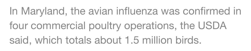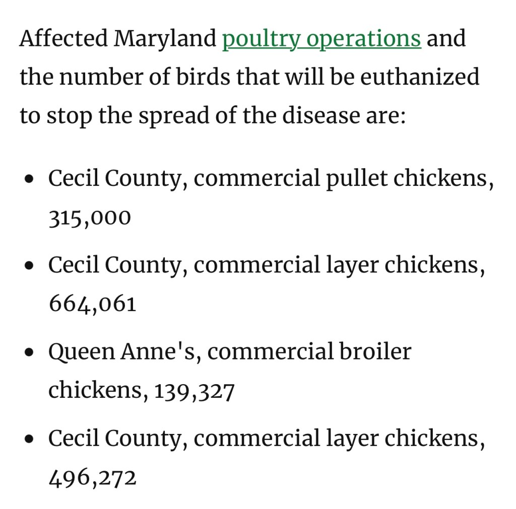 According to an article this week in the Bowie Patch, Maryland is one of 24 states with a bird flu outbreak. 😱