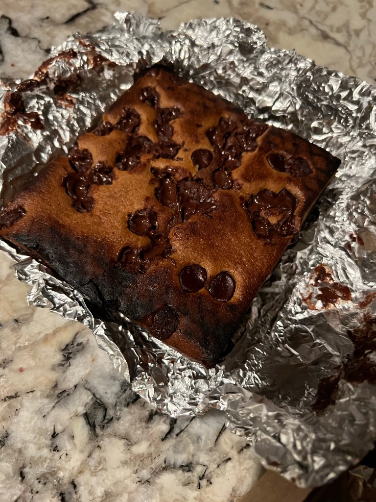 The brownie was a total bust! It was burnt to a crisp and inedible! 😡
