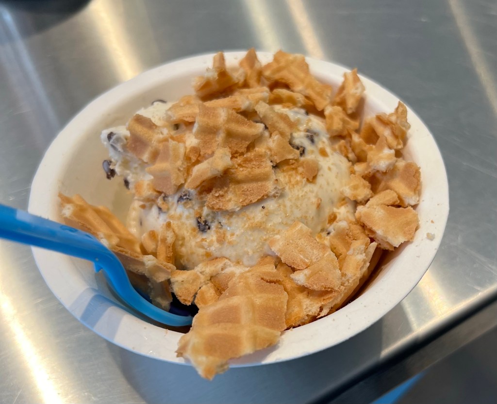 Because I’m a weirdo, I ordered an empty waffle cone. Lol!! It was tasty! The flavor is very similar to a fortune cookie. 🥠