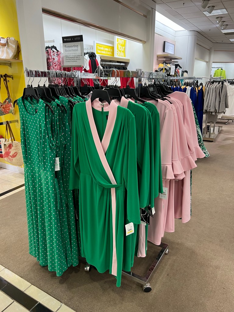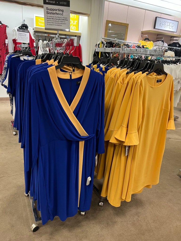 As I was strolling through the Bowie Macy’s earlier this week, I was pleasantly surprised by the display of dresses designed to flaunt your sorority pride and support sisterhood! So awesome!