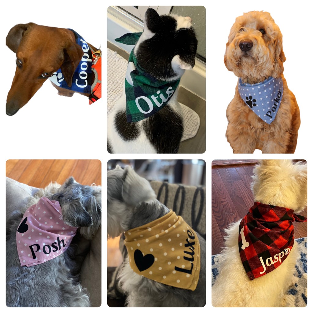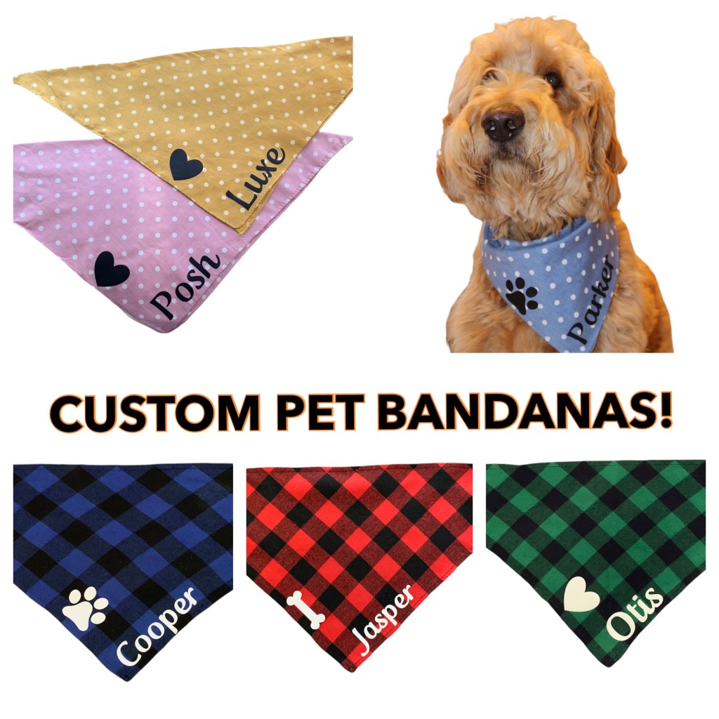 Check out my custom pet bandanas with your pets’ name at my Etsy Store! “Fancify” your pet for the holiday season!